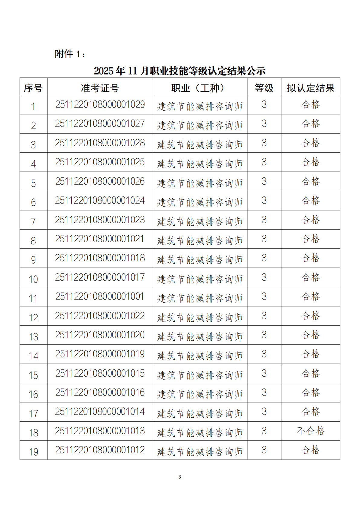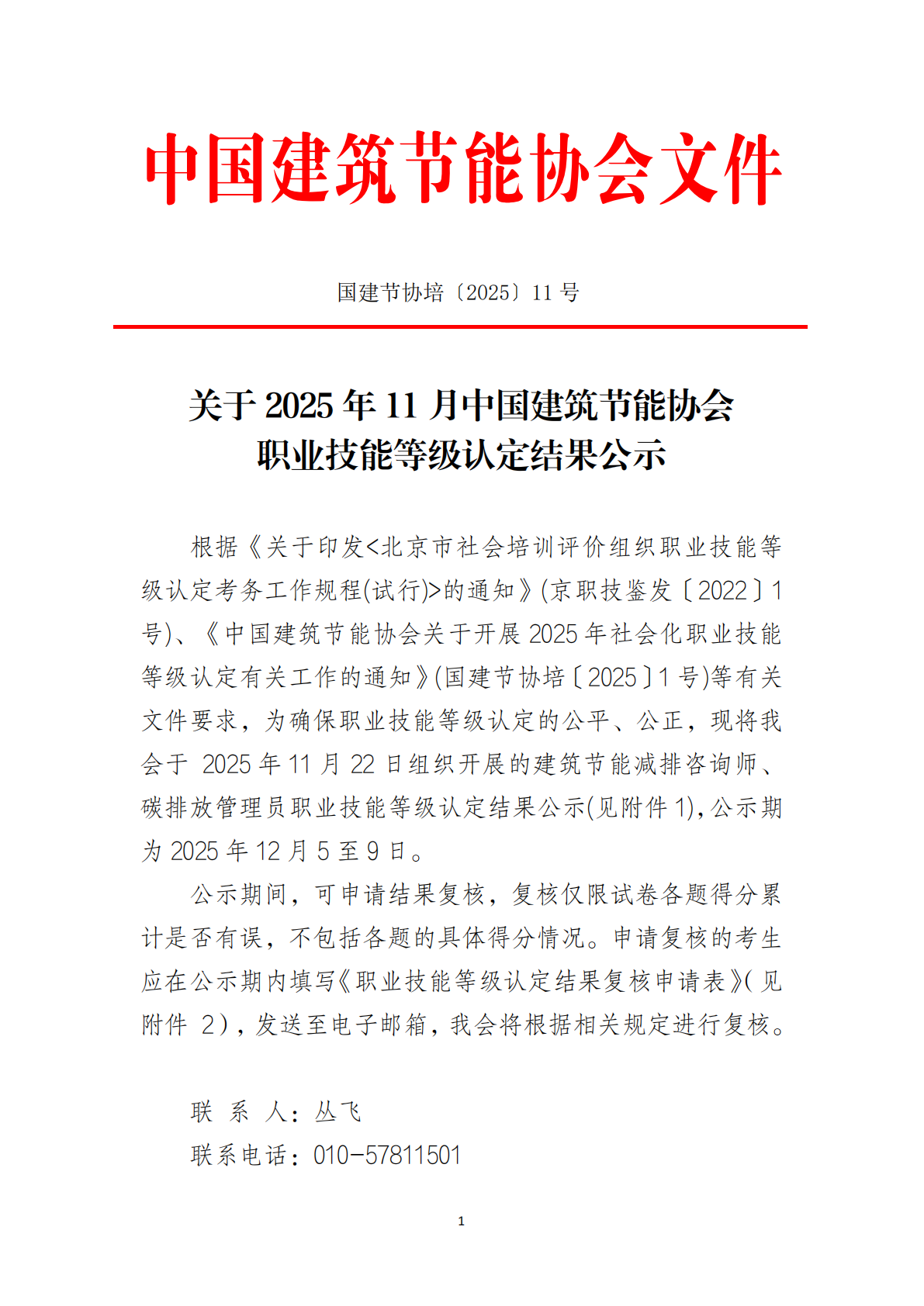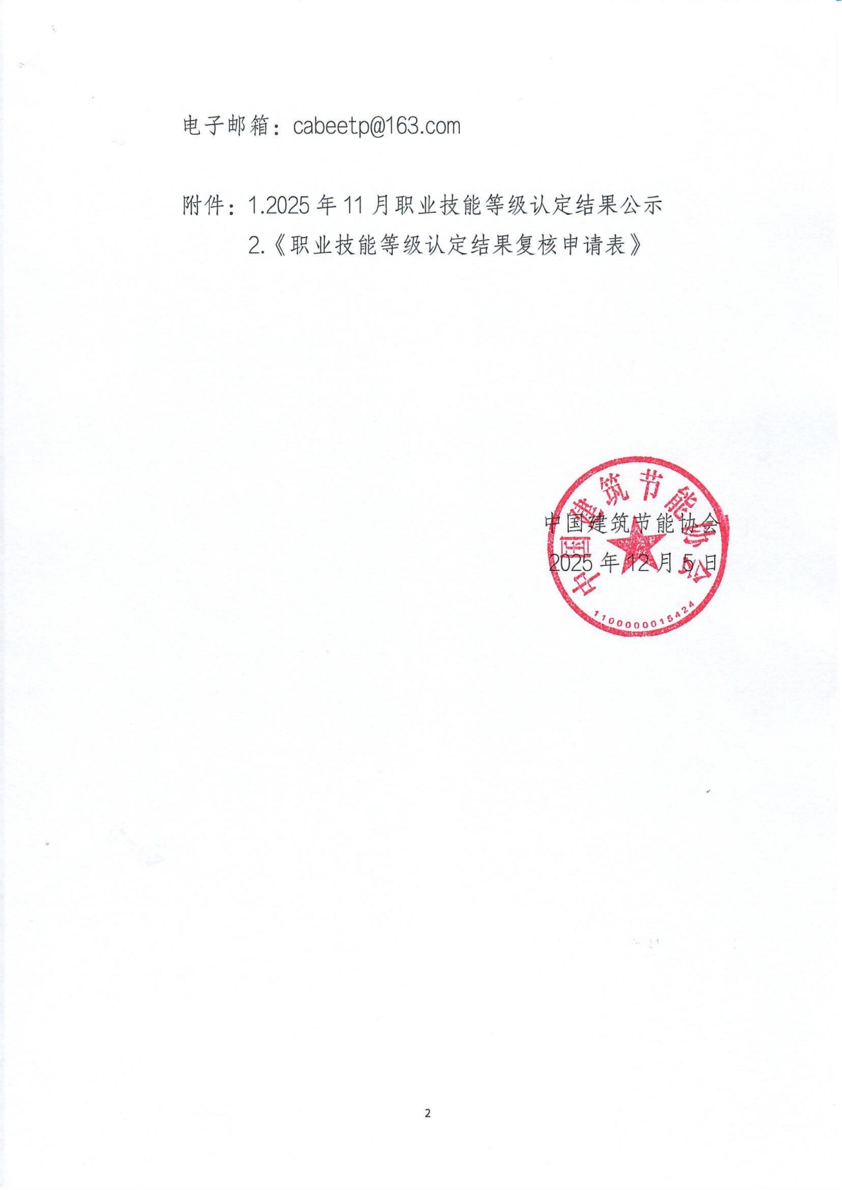 关于2025年11月中国建筑节能协会职业技能等级认定结果公示